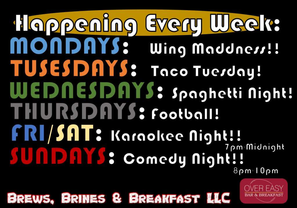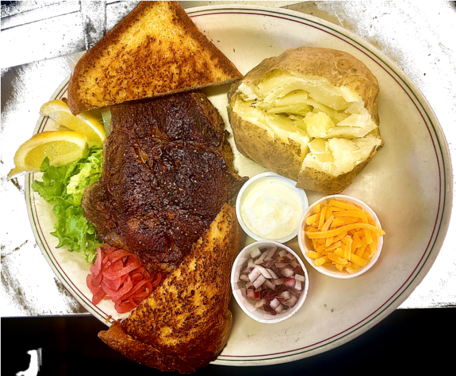 The menu boasts home made breakfast lunch and dinner entrees that include a simply unbeatable chicken fried steak, rib eye steak bites with pickled onions, 1/3lb specialty and classic burgers and house cooked pulled pork or corned beef hash and sandwiches. Daily & weekly specials.